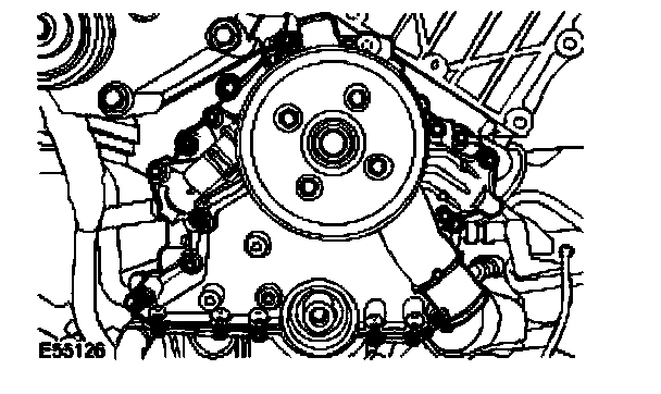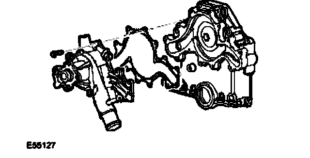 NOTE: Make sure the cylinder block cradle gasket is located correctly around the front oil seal. Install the engine front cover.