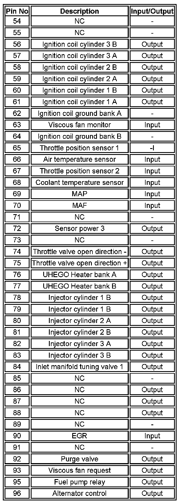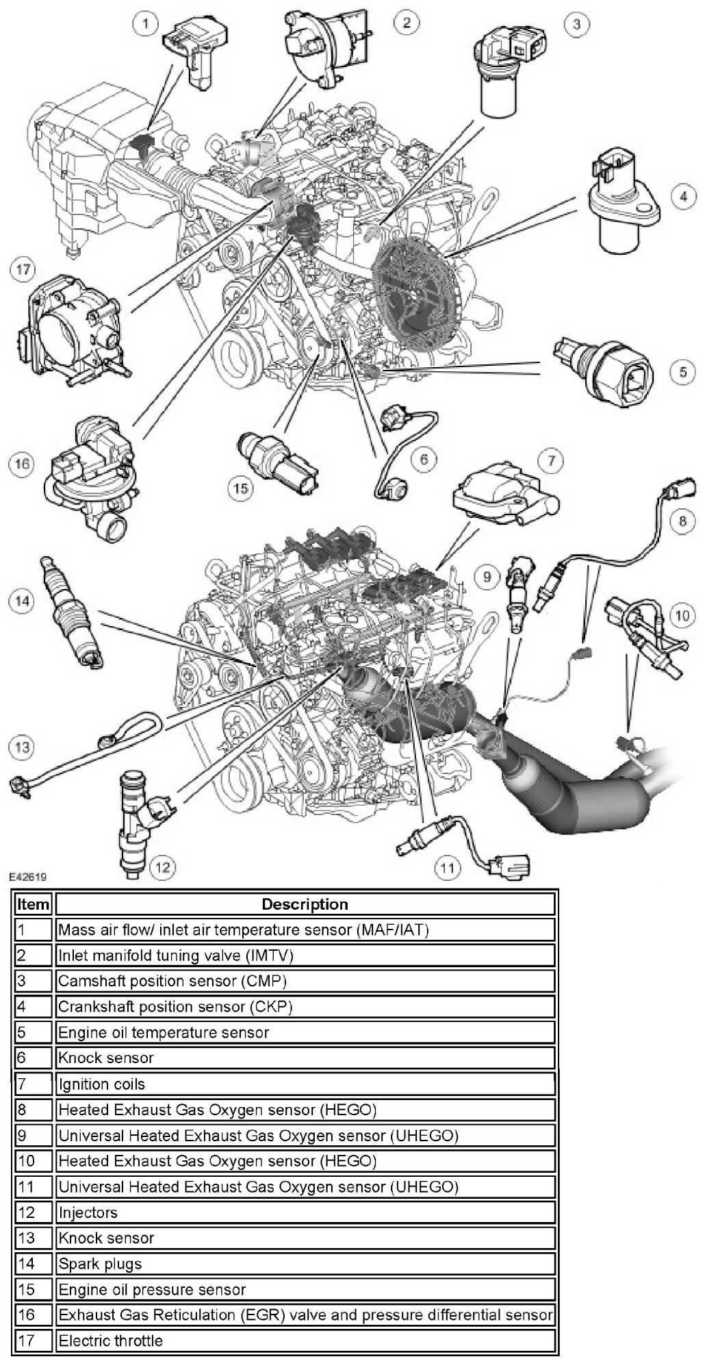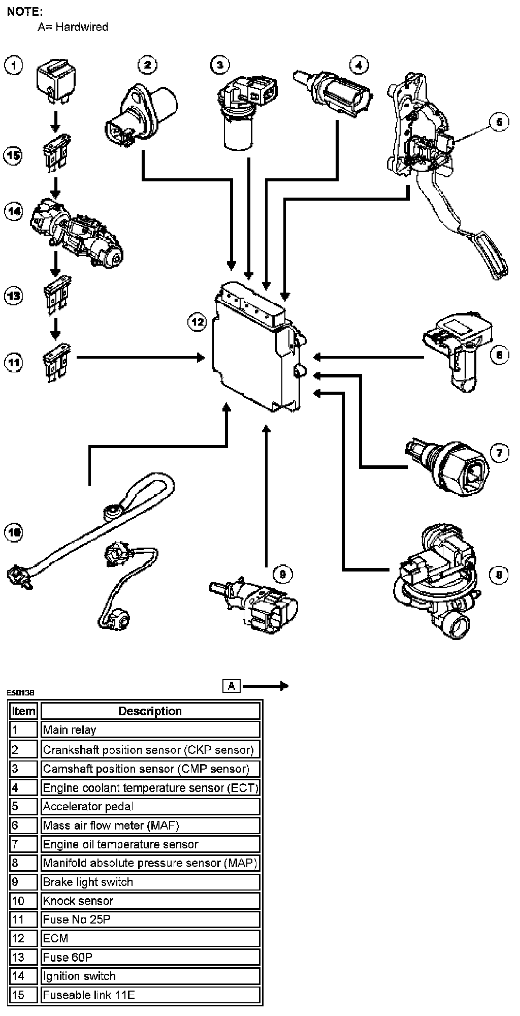 The ECM controls the engine fuelling by providing sequential fuel injection to all cylinders. Ignition is controlled by a direct ignition system, provided by six plug top coils. The ECM is able to detect and correct for ignition knock on each cylinder and adjust the ignition timing for each cylinder to achieve optimum performance.