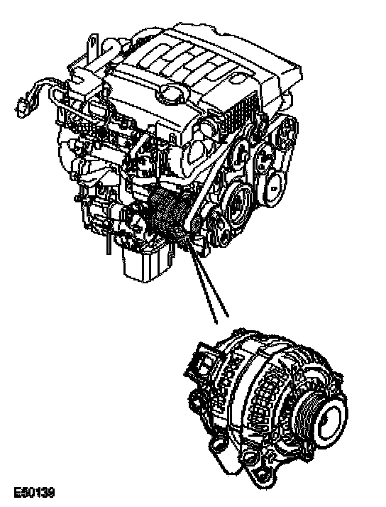 The generator is located at the front RH side of the engine, in front of the RH cylinder head. The generator has an output of 85/150 Amps and is manufactured by Denso. A six-ribbed polyvee belt drives the generator pulley, which in turn is driven from the engine crankshaft pulley.