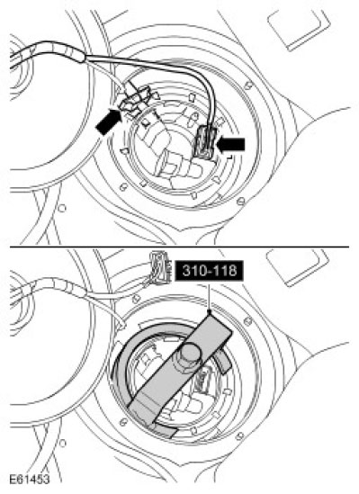 ^ Using the special tool, install the fuel tank module locking ring and tighten to 35 Nm (26 ft. lbs.).