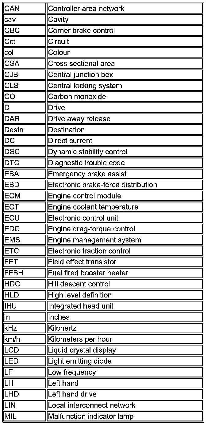 5. Cct: Identifies the model or option which uses the wire. 'ALL' means applicable to all models in the range fitted with the feature or system in question. In instances where different models, features or systems require different colour wires to be fitted in a cavity, each instance of the cavity is included in the pin-out table.