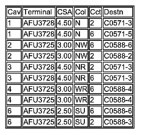 ^ Wire Chart (Pin-out table) - A six column table, giving details of each wire within the connector: