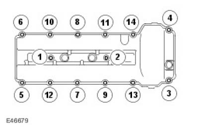 ^ Install the RH valve cover bolts to the positions previously noted.