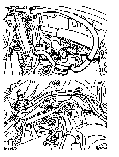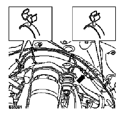 53. RH side front: Release the air suspension pipe from the wiring harness clip.