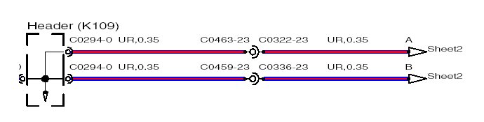The wire length (in millimetres) is displayed after the colour and cross sectional area; for example, SR,0.35,480. In this example, the figure, 480 indicates the approximate position of the harness splice is 480 mm from connector C2335.