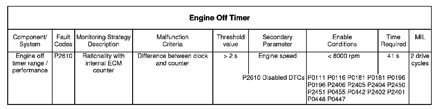 The engine off timer monitors compares the real time clock data supplied by the instrument pack with it s own internal counter.