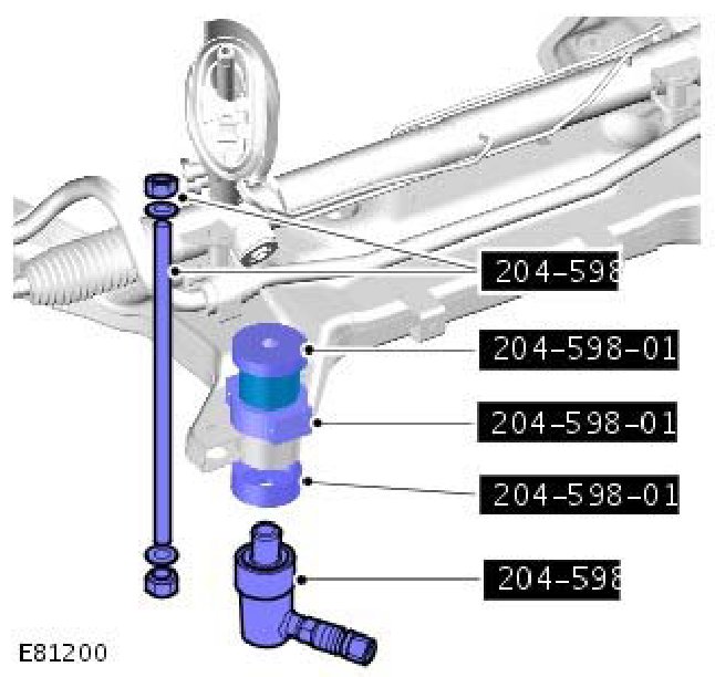 - Special tool 204-598-01/8 is used to start the bushing removal process, and must be removed after the bushing has released, as it will not pass through the sub-frame bushing aperture.