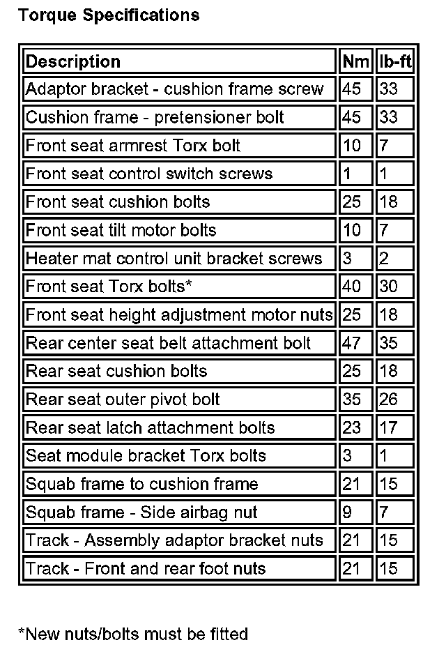 Seats: Specifications