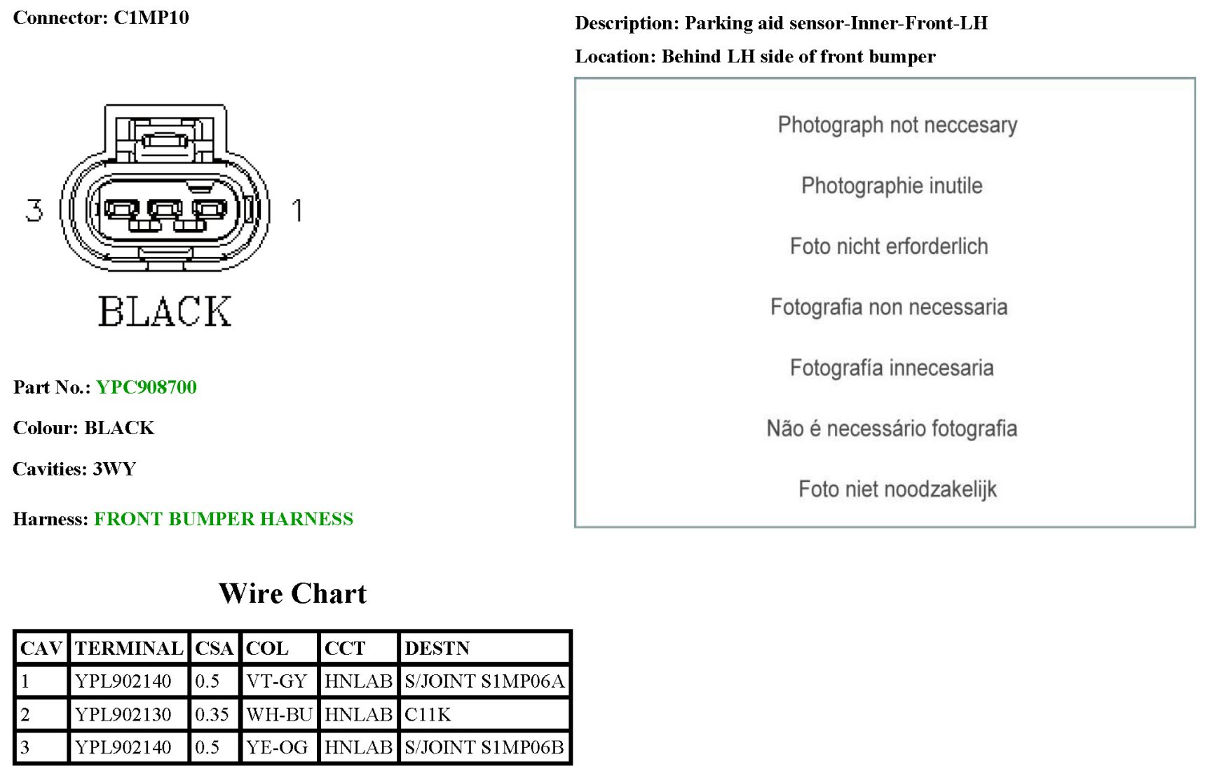 Parking Aid Sensor-Inner-Front-LH