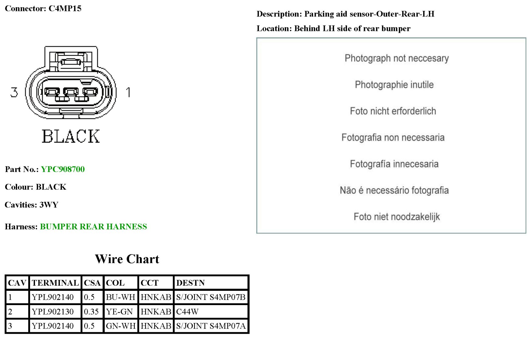 Parking Aid Sensor-Outer-Rear-LH