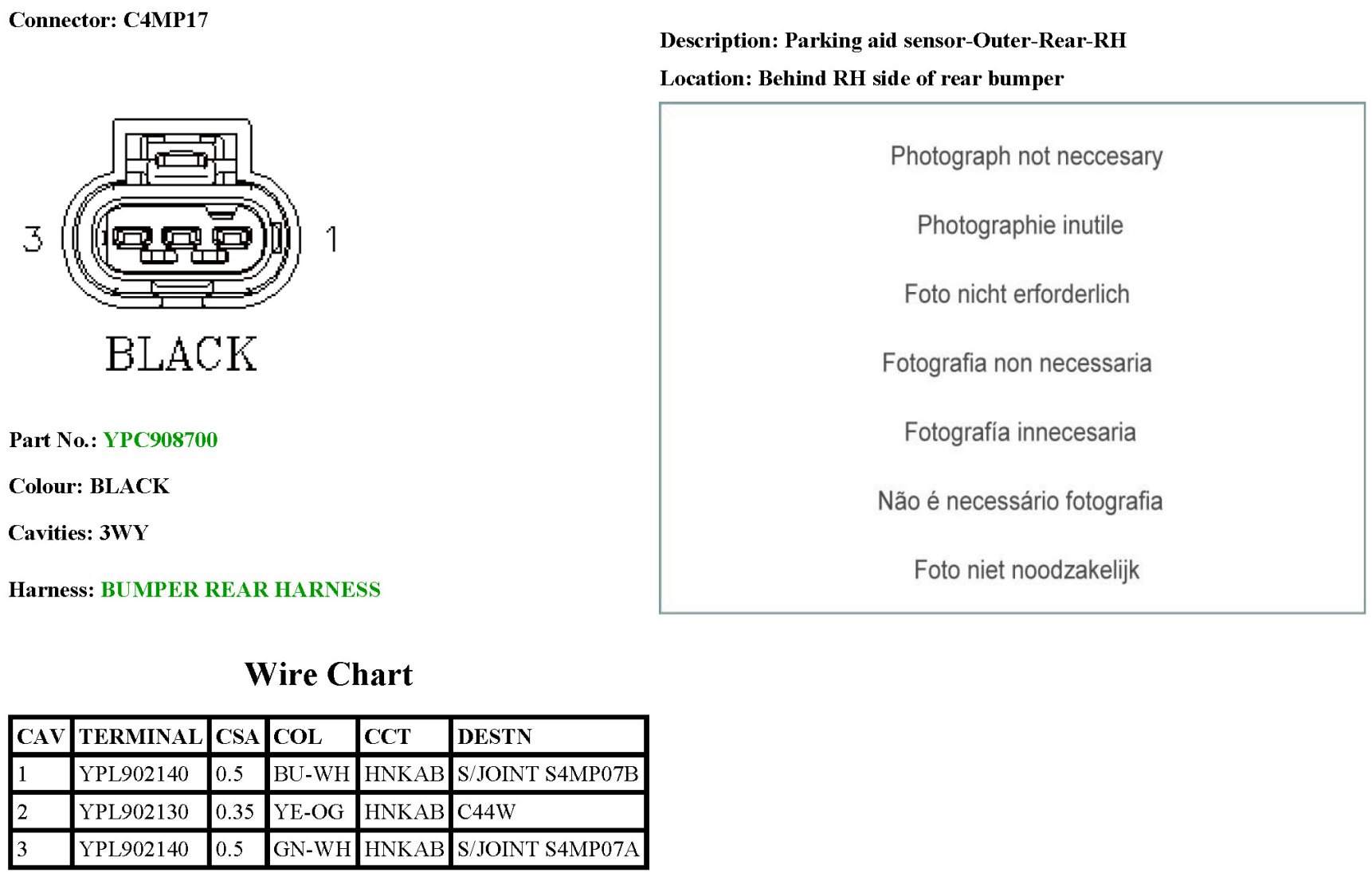 Parking Aid Sensor-Outer-Rear-RH