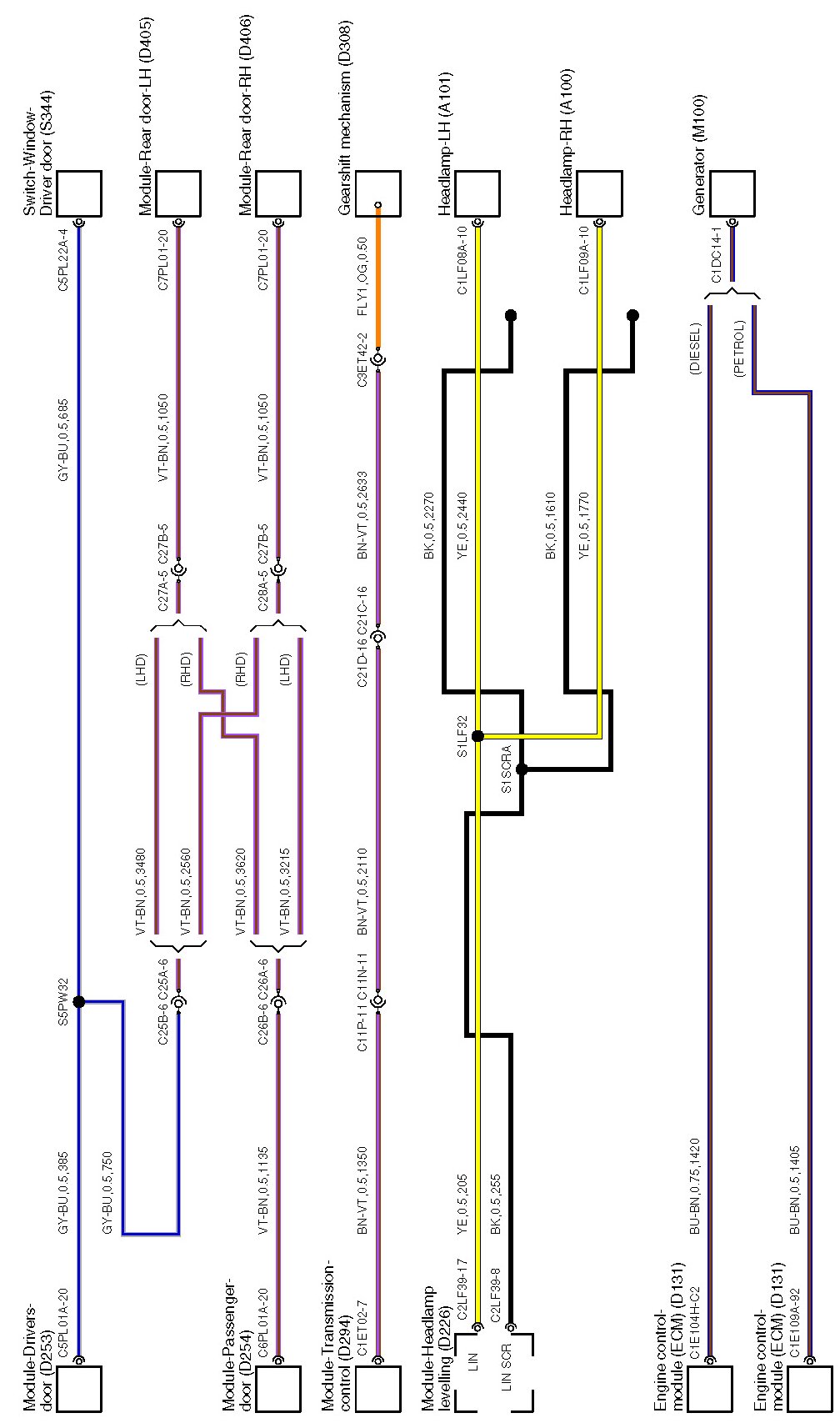Locations: The location views for connectors and components depicted within these diagrams can be found via the connector's base number (i.e. C0570) at Vehicle/Locations/Connectors. Connector Locations