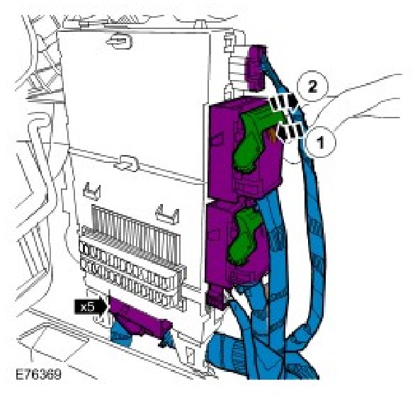 8. Connect the 5 electrical connectors to the CJB and secure the front carpet.