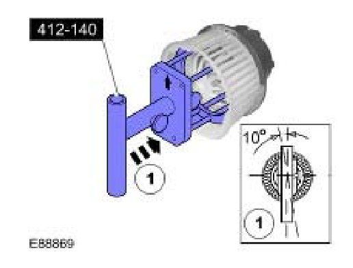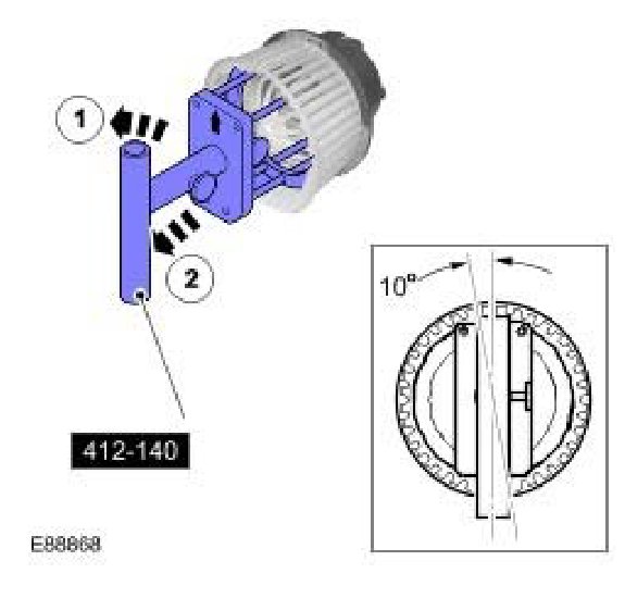 1. Using the special tool, install the blower motor assembly approximately 10 degrees counter-clockwise from the vertical position.