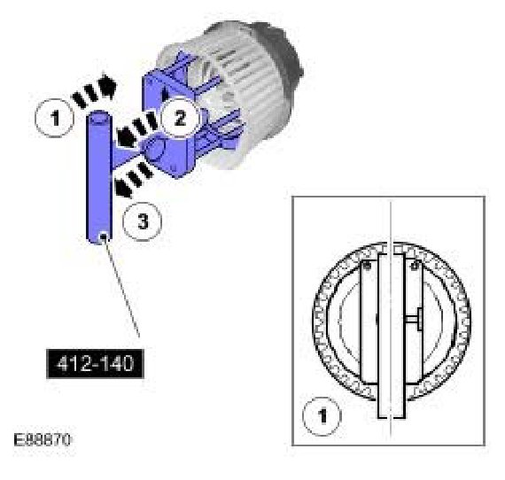 15. With the marking upwards, use the guide to install the remainder of the special tool to the blower motor.
