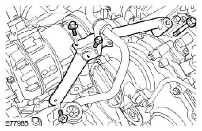 5. Install the A/C compressor, upper support bracket.