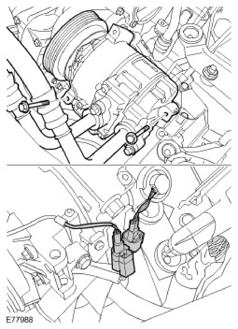 9. Disconnect the A/C compressor refrigerant lines.