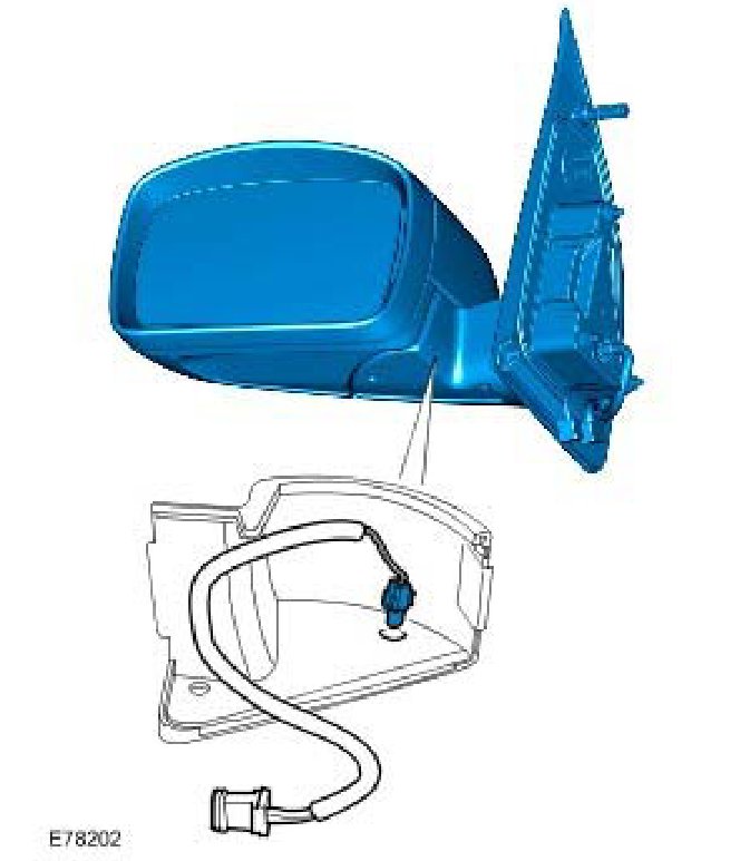 The ambient air temperature sensor is a NTC thermistor, and is mounted in the LH door mirror. The sensor receives a 5 V reference feed from the ECM. By monitoring the returned voltage, the ECM can calculate the resistance of the sensor and hence ambient air temperature. The ECM transmits an ambient air temperature value over the high speed CAN bus. This value is relayed to the ATC module by the CJB over the medium speed CAN bus.