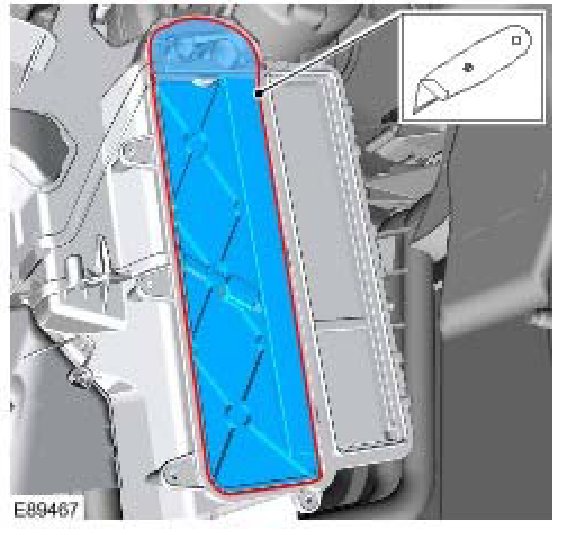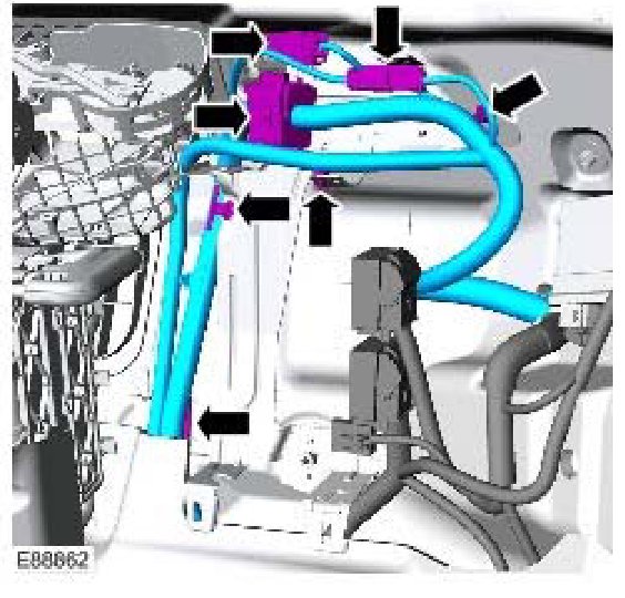 NOTE: The removal of this component involves cutting an aperture in the evaporator housing wall and cutting through the high and low pressure A/C lines. A service repair kit is supplied to cover this procedure.