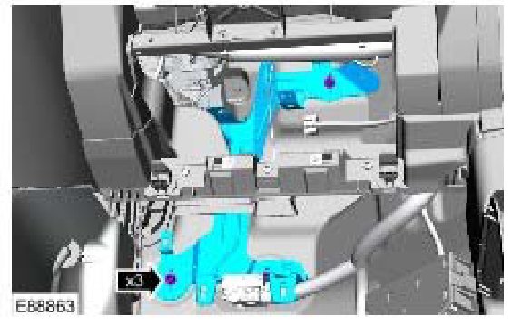 13. Connect the 5 electrical connectors to the CJB and secure the front carpet.