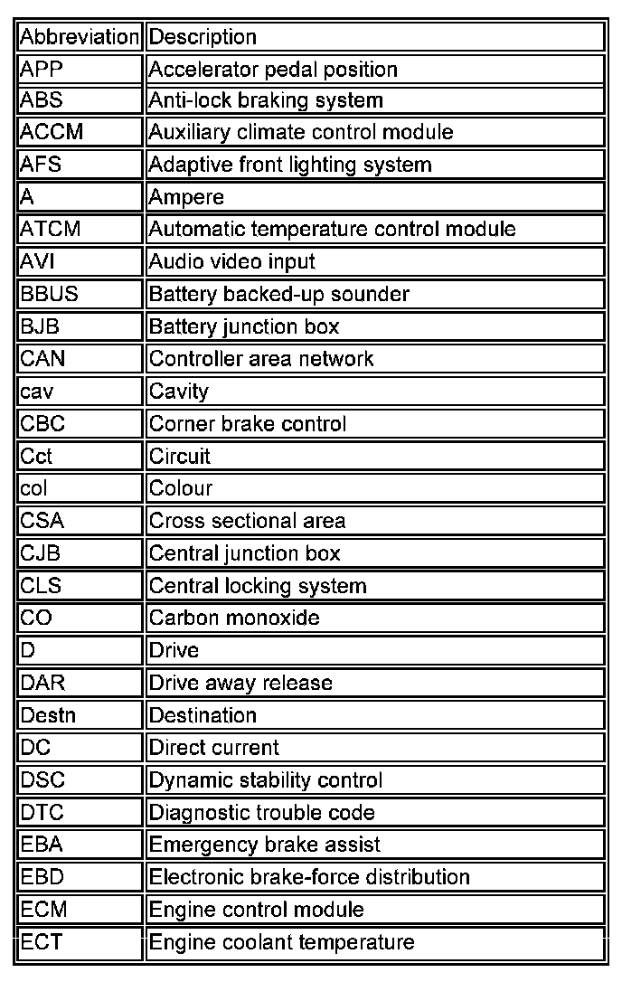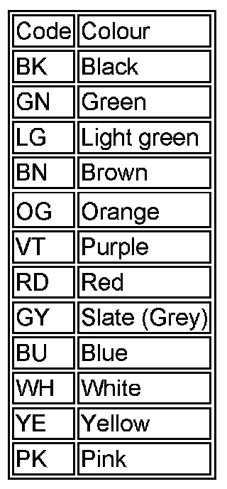 5. Cct: Identifies the model or option which uses the wire. 'ALL' means applicable to all models in the range fitted with the feature or system in question. In instances where different models, features or systems require different colour wires to be fitted in a cavity, each instance of the cavity is included in the pin-out table.