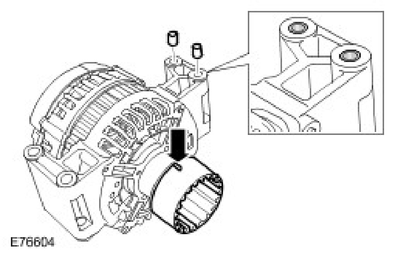 4. Locate the generator and install and lightly tighten the upper bolts.