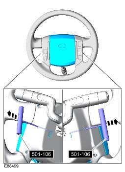 6. If installed, disconnect the SRS ride-down electrical connector concealed at the rear of the steering column.
