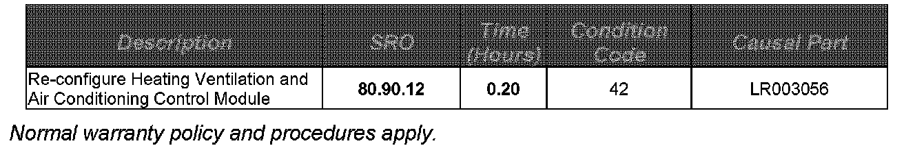 In the event of a customer concern of the above, follow the Repair Procedure outlined below to reconfigure the Heating Ventilation and Air Conditioning Control Module.