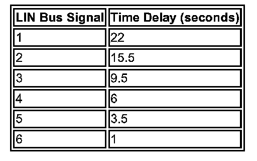 The intermittent wiper setting broadcast on the LIN bus to the CJB equates to the following time delays.