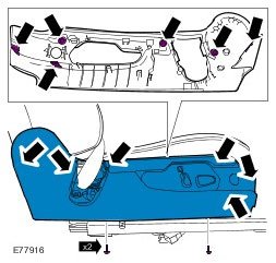 1. Carefully release the clip from behind the front seat base side trim panel.