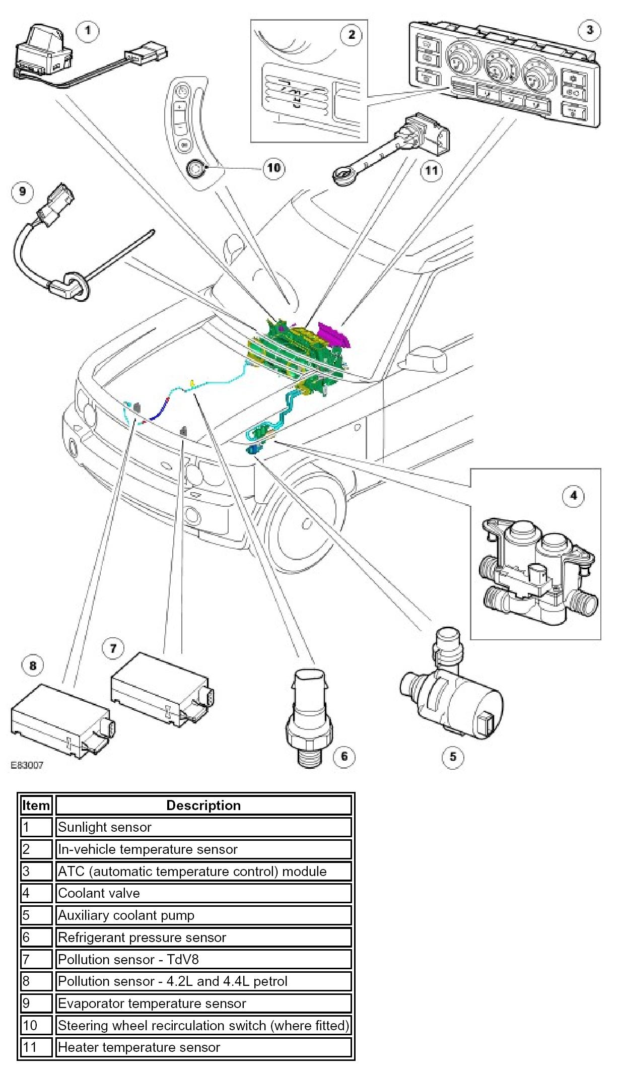 The system receives ambient temperature, engine coolant temperature, engine speed and vehicle speed inputs in K bus messages from the instrument cluster.If the K bus messages are missing or faulty, the ATC (automatic temperature control) module adopts the following default values: