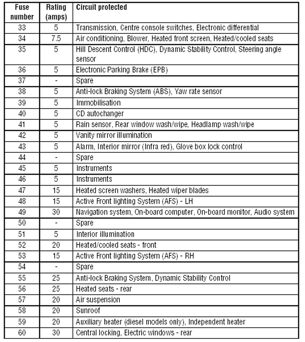 Fuses 33 - 60 Specifications: