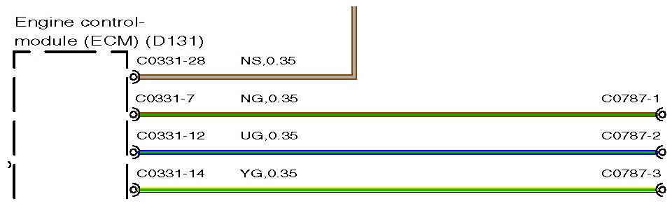 The wire length (in millimeters) is displayed after the colour and cross sectional area; for example, SR,0.35,480. In this example, the figure, 480 indicates the approximate position of the harness splice is 480mm from connector C2335.