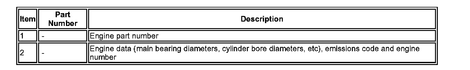 Engine data is marked at three locations, two on the cylinder block (shown) and one on the engine front cover, which consists a label displaying the engine number. Component diameters are represented by alphabetical and numerical codes.