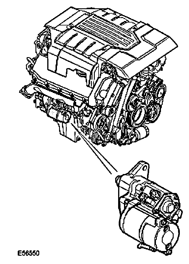 The starter motor is located on the rear RH side of the engine block. The motor is secured to the block and protrudes through an aperture to drive the flywheel via a ring gear.