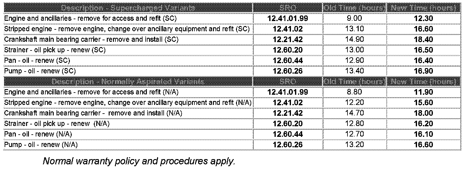 As a direct result of Retailer input, Service Repair Operation times have been increased and the Workshop Manual procedure for the removal/installation of both the Normally Aspirated and Supercharged engine assemblies has been revised. The procedure has changed by removing the transmission and lowering the engine through the bottom of the vehicle.