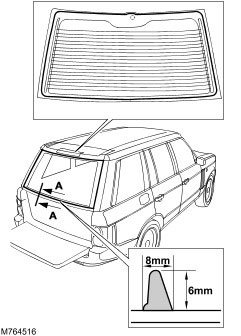 5. Using the recommended solvent, clean the sealant mating faces of the liftgate and the liftgate window glass.