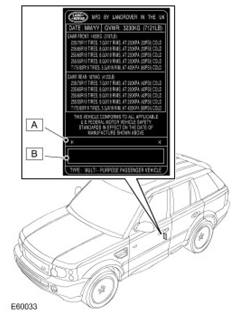 4. NAS/Canada - On the Tire Data/Specification label attached to the front of the LH B-pillar.