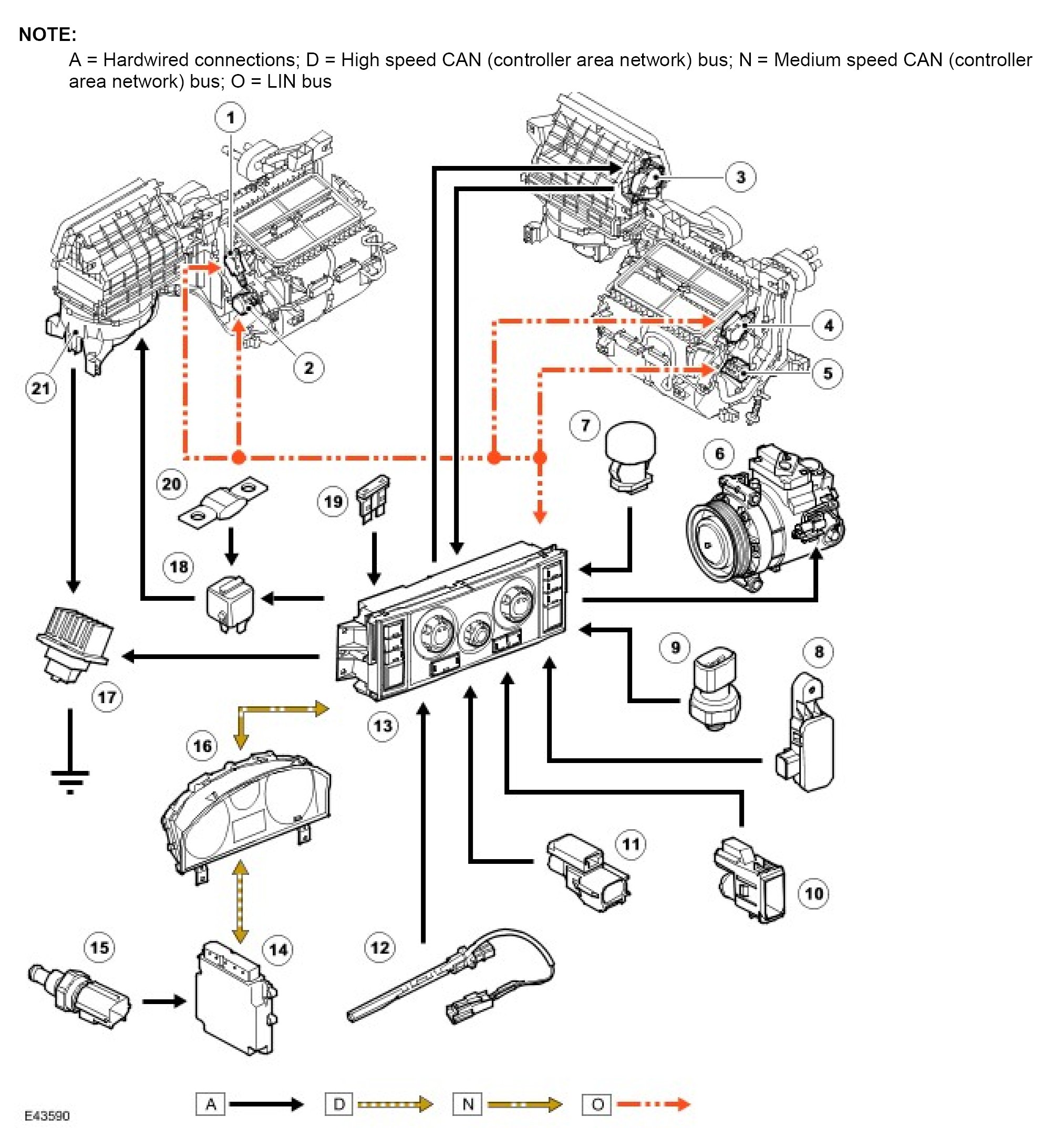 Engine idle speed changes, and electrical load changes of systems not under direct control of the ATC (automatic temperature control) module (air suspension and entertainment), are initiated using the appropriate medium speed CAN (controller area network) bus message. When partial operation is requested: