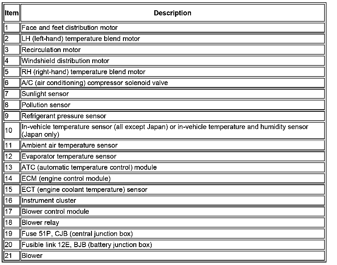^ If none of above conditions are met, the ATC (automatic temperature control) module adopts the last used table.