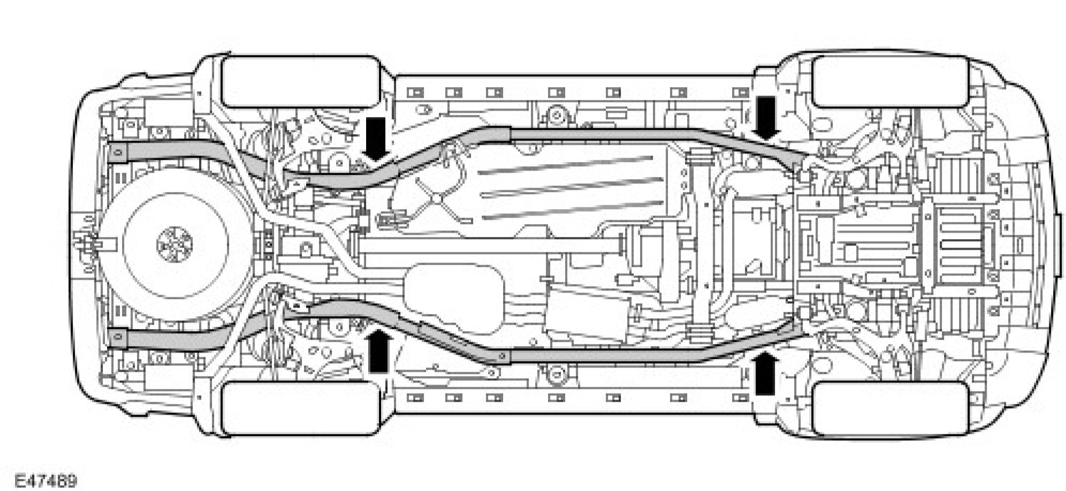 5. Ensure that vehicle is correctly supported on all four lifting pads, that pads are still correctly positioned and are in full contact with the body frame longitudinals.