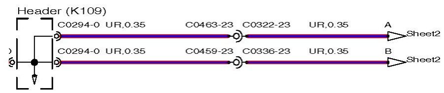 The wire length (in millimeters) is displayed after the colour and cross sectional area; for example, SR,0.35,480. In this example, the figure, 480 indicates the approximate position of the harness splice is 480mm from connector C2335.