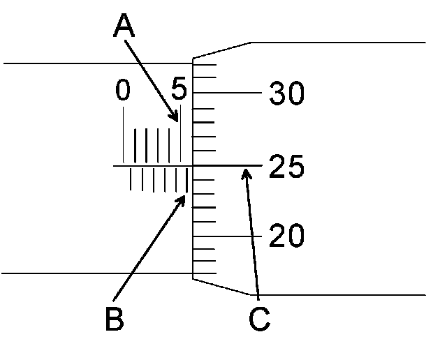 2. Note the one-half millimeter mark (if appropriate) and record.