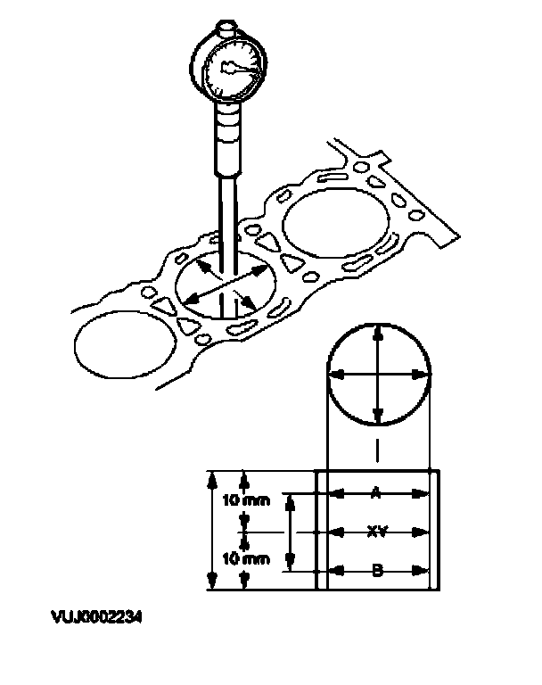 Measure the cylinder bore with an internal micrometer.