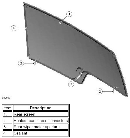 The tempered glass tinted green rear window is bonded to the upper tail door frame using PU sealant. Fitted to the inner surface of the rear screen are the heating elements and an extra FM antenna for diversity tuning, if fitted.