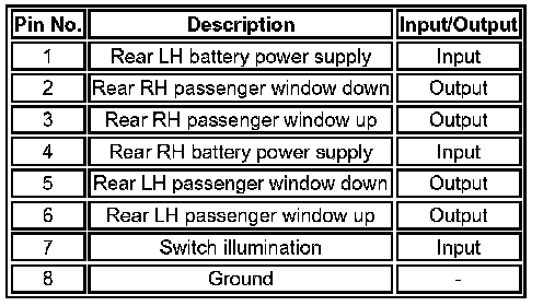 When the switches in the drivers door are used to operate the passenger windows or to isolate the rear windows, the drivers door switch pack outputs a signal to the relevant window regulator. While the isolator is engaged, the rear regulators ignore inputs from the rear window switches, and the drivers door switch pack illuminates a LED in the isolator switch.