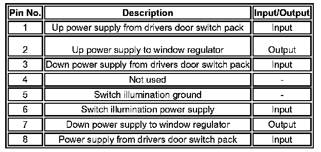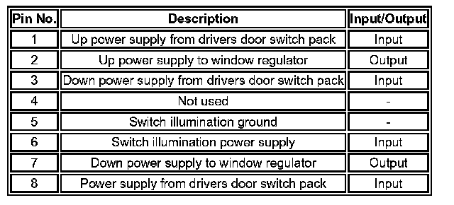 Driver's Door Window Switch Pack Pin Out Information