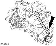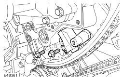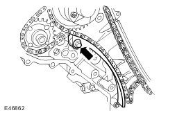 ^ Install the LH secondary timing chain tensioner and timing chain to the camshaft sprockets.