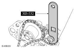 CAUTION: Using the special tool, apply force to the tool in a counter-clockwise direction, to tension the primary timing chain on its drive side.
