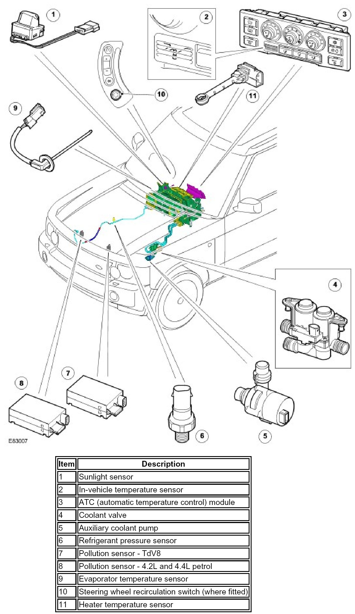 The system receives ambient temperature, engine coolant temperature, engine speed and vehicle speed inputs in K bus messages from the instrument cluster. If the K bus messages are missing or faulty, the ATC (automatic temperature control) module adopts the following default values: